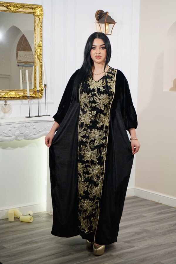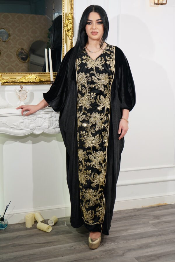 Une robe au charme oriental qui allie raffinement et élégance. La Robe Lune d’Orient est conçue en taille standard du 36 au 56, grâce à sa ceinture intérieure ajustable qui s’adapte parfaitement à votre silhouette et la rend presque sur mesure. Avec ses détails élégants et sa coupe fluide, elle est idéale pour l’Aïd et pour toutes vos occasions spéciales.